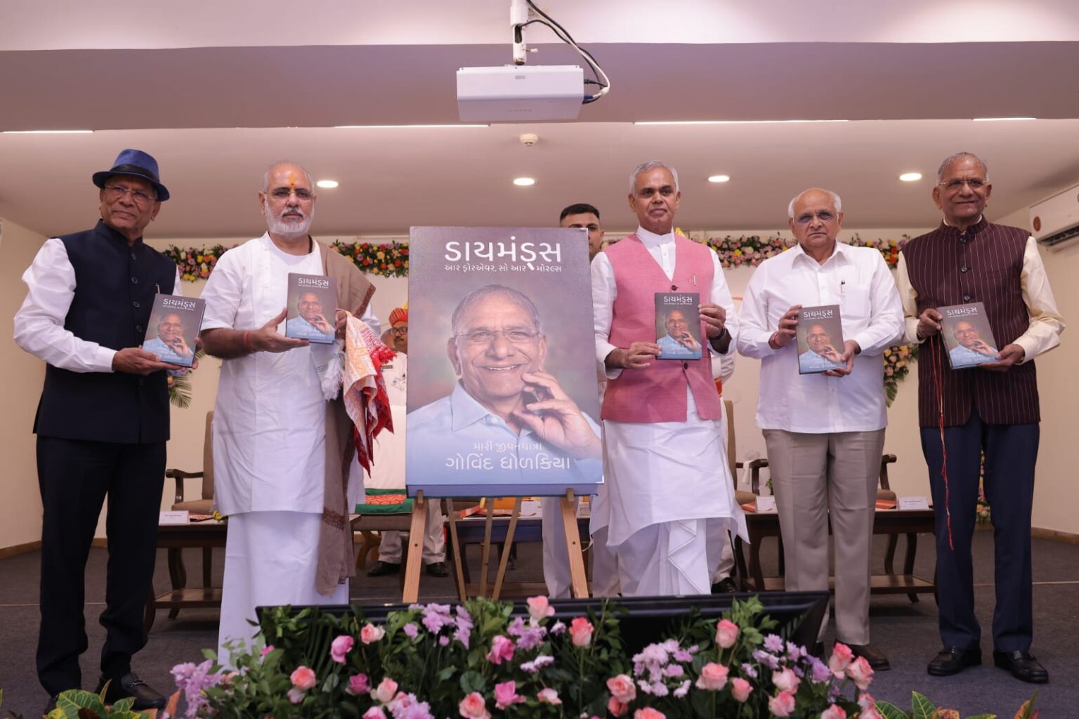 ગાંધીનગર: રાજ્યપાલ આચાર્ય દેવવ્રતજી, મુખ્યમંત્રી ભૂપેન્દ્રભાઈ પટેલ અને પૂજ્ય ભાઈ શ્રી રમેશભાઈ ઓઝાએ અગ્રણી ઉદ્યોગપતિ અને શ્રી રામકૃષ્ણ એક્સપોર્ટ્સ પ્રાઇવેટ લિમિટેડના સ્થાપક-અધ્યક્ષ ગોવિંદભાઈ ધોળકિયા લિખિત આત્મકથા ‘ડાયમંડ્સ આર ફોર એવર, સો આર મોરલ્સ’ (હીરા હંમેશા માટે હીરા છે, એવી જ રીતે નૈતિકતા પણ) ના ગુજરાતી સંસ્કરણનું વિમોચન કર્યું હતું. રાજભવન, ગાંધીનગરમાં આયોજિત ગરિમામય કાર્યક્રમમાં ગોવિંદભાઈ ધોળકિયા, અરજણભાઈ ધોળકિયા અને ઉદ્યોગ, સાહિત્ય તથા રાજકીય ક્ષેત્રના આગેવાનો ઉપસ્થિત રહ્યા હતા.