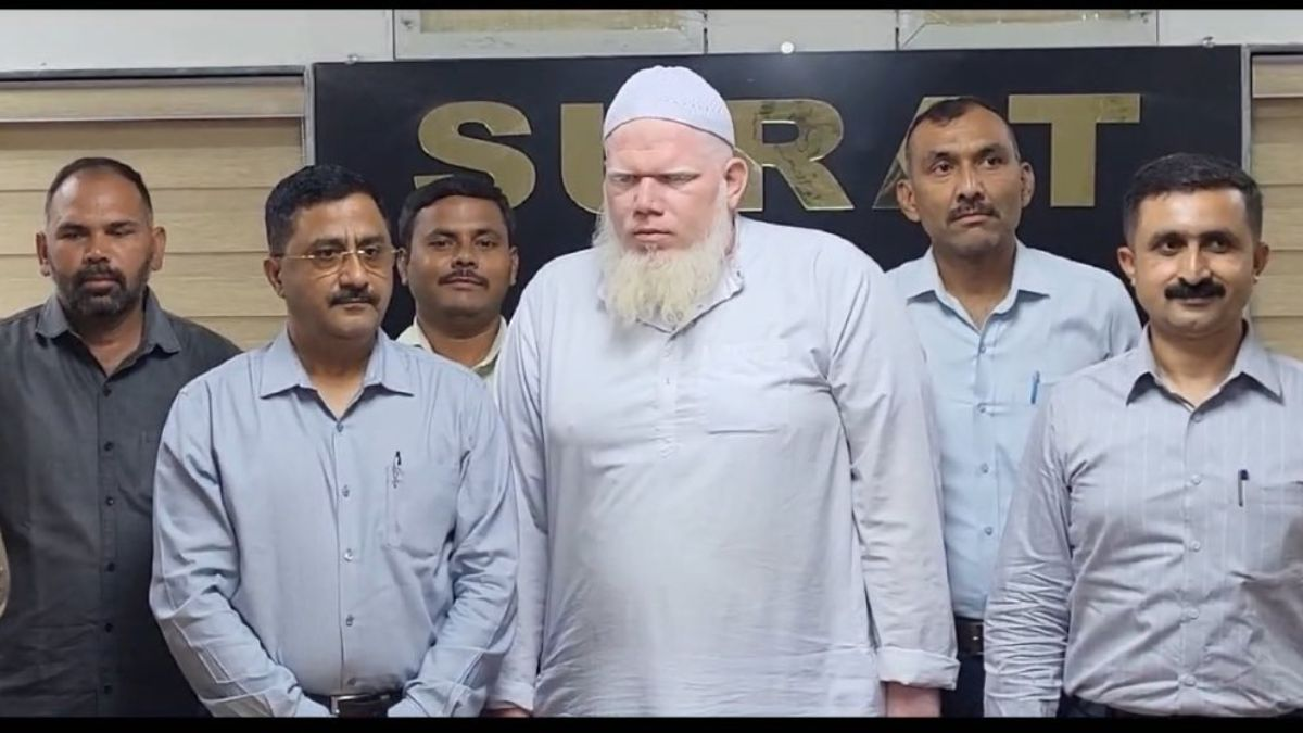 ગુજરાતના સુરતમાંથી એક મૌલવીની ધરપકડ કરવામાં આવી છે. આ મૌલવી પર હિન્દુ અને ભાજપના નેતાઓને મારી નાખવાની ધમકી આપવાનું કાવતરું ઘડવાનો આરોપ છે. આ અંગે માહિતી આપતાં એક વરિષ્ઠ પોલીસ અધિકારીએ જણાવ્યું કે આરોપી પાકિસ્તાન અને નેપાળ સ્થિત તેના હેન્ડલર્સ સાથે મળીને આ કાવતરું ઘડી રહ્યો હતો. સુરતના પોલીસ કમિશનર અનુપમ સિંહ ગેહલોતે પકડાયેલા આરોપીની ઓળખ મૌલવી સોહેલ અબુબકર તિમોલ (27) તરીકે કરી હતી, જેઓ દોરાની ફેક્ટરીમાં મેનેજર તરીકે કામ કરતા હતા અને મુસ્લિમ બાળકોને ઈસ્લામ પર ખાનગી ટ્યુશન આપતા હતા.