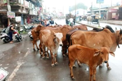 ભરૂચ શહેર ના મુખ્ય માર્ગો ઉપર રખડતા ઢોરો નૉ અડિંગો યથાવત જોવા…