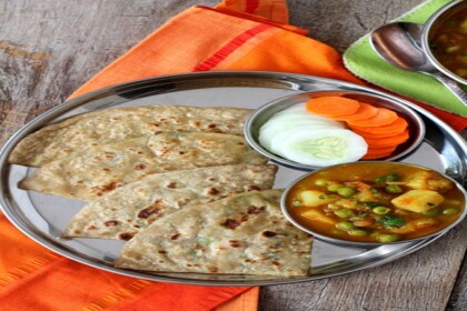 ગાજર, બટેટા અને વટાણાની કરી સાથે ઘીમાં શેકેલા ગરમ પરાઠાનો સ્વાદ ખૂબ…