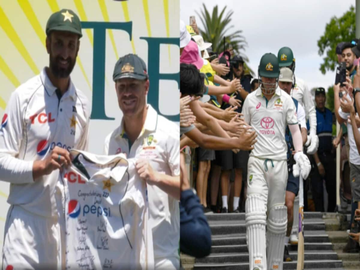 પાકિસ્તાની ક્રિકેટ ટીમે અદ્ભુત ઈશારામાં ડેવિડ વોર્નરને તેની અંતિમ ટેસ્ટમાં બાબર આઝમની જર્સી ભેટમાં આપી હતી. આ જર્સી પર ટીમના તમામ ખેલાડીઓના હસ્તાક્ષર હતા. જ્યારે વિઝિટિંગ ટીમના કેપ્ટન શાન મસૂદે આ ગિફ્ટ આપવા માટે ડેવિડ વોર્નરને સ્ટેજ પર બોલાવ્યો ત્યારે ઓસ્ટ્રેલિયન ખેલાડીએ જે કહ્યું તેણે બધાનું દિલ જીતી લીધું. શાન મસૂદને મળ્યા બાદ વોર્નરે કહ્યું માશાઅલ્લાહ-ઇન્શાઅલ્લાહ. આ ઘટનાનો વીડિયો સોશિયલ મીડિયા પર વાયરલ થઈ રહ્યો છે.
