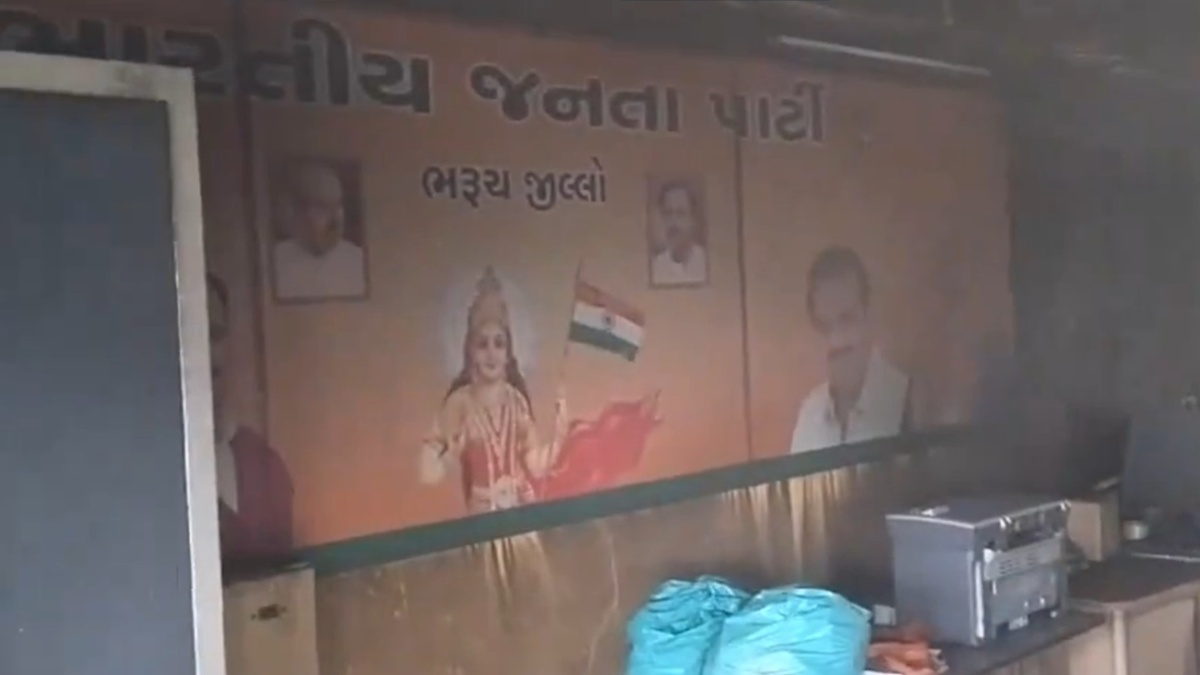 #WATCH | Gujarat: A fire broke out at the BJP office in Bharuch due to a short circuit. No casualties reported. pic.twitter.com/fFzOP37cXn