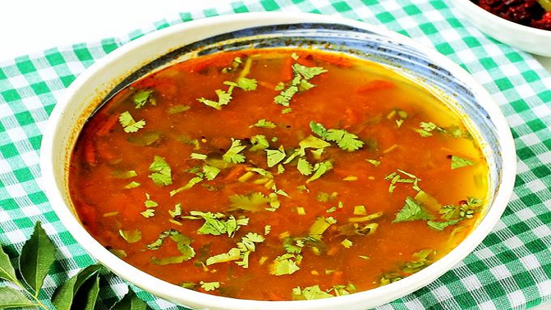 સામગ્રી- 3 ટામેટાં (છીણેલી), 1 ડુંગળી ઝીણી સમારેલી (ઇચ્છા મુજબ), 2 લીલા મરચાં, સ્વાદ મુજબ મીઠું, 1/2 ચમચી હળદર પાવડર, 1 ચમચી લાલ મરચું પાવડર, 1.5 કપ પાણી, 1/2 કપ આમલીનું પાણી, 1.5 ટીસ્પૂન રસમ પાવડર (વૈકલ્પિક), 1 ચમચી ધાણા, 8-10 લવિંગ લસણ, 1 જીરું, 2-3 ચમચી કાળા મરી, મુઠ્ઠીભર ધાણા