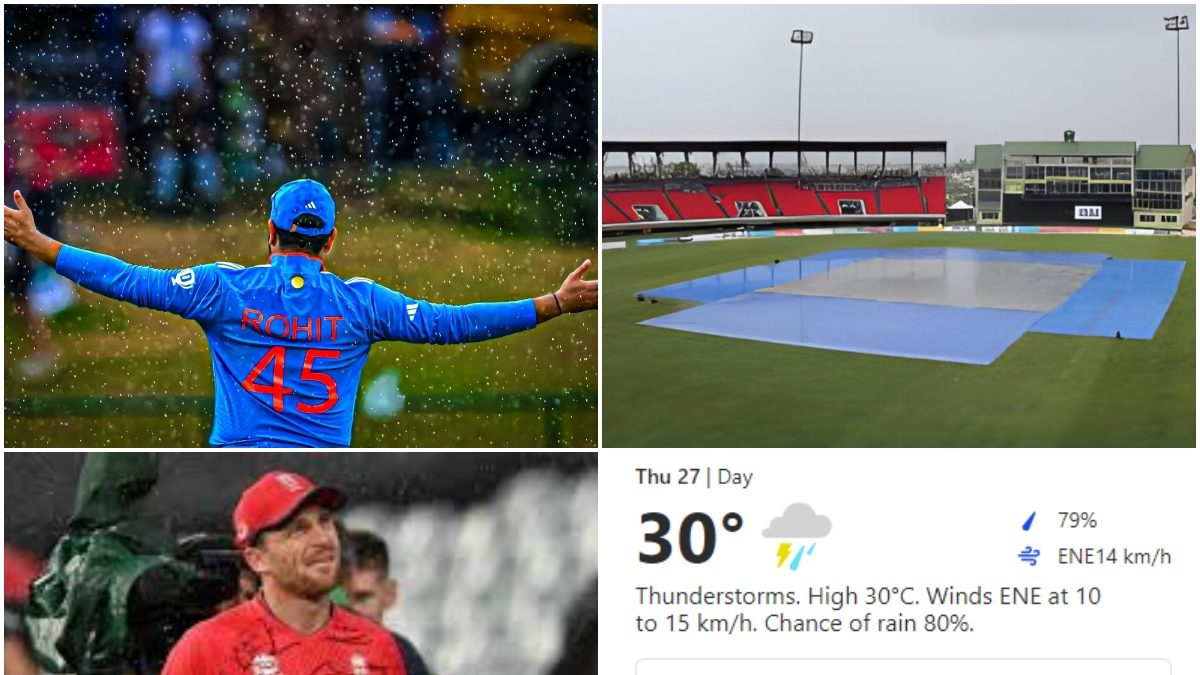 ભારત vs ઈંગ્લેન્ડ T20 વર્લ્ડ કપની બીજી સેમિફાઈનલ આજે એટલે કે ગુરુવારે 27 મેના રોજ ગુયાનાના પ્રોવિડન્સ સ્ટેડિયમમાં રમાશે. સ્થાનિક સમય અનુસાર, આ મેચ સવારે 10:30 વાગ્યે શરૂ થવાની છે અને ભારતીય સમય અનુસાર, મેચ રાત્રે 8 વાગ્યે શરૂ થવાની છે. ટોસ માટે, બંને કેપ્ટન – રોહિત શર્મા અને જોસ બટલર – અડધા કલાક પહેલા મેદાનમાં પ્રવેશ કરશે. આ મેચમાં વરસાદને લઈને મજબૂત આગાહી કરવામાં આવી રહી છે. ગયાનામાં સવારે 10 થી 12 વાગ્યા સુધી વરસાદની સંભાવના 50 ટકાથી વધુ છે, જ્યારે તેના પછી બે કલાક સુધી 34-34 ટકા સંભાવના છે, પરંતુ તે પછી ત્યાં ભારે વરસાદ પડી શકે છે. ICCએ આ મેચ માટે કોઈ રિઝર્વ ડે રાખ્યો નથી, જોકે તેણે મેચ પૂરી કરવા માટે 250 વધારાની મિનિટ આપી છે. આવી સ્થિતિમાં ચાહકો એ જાણવા ઉત્સુક છે કે જો આ મેચ વરસાદને કારણે ધોવાઈ જશે તો શું થશે? તો તમારી માહિતી માટે, જો ભારત અને ઈંગ્લેન્ડની મેચ વરસાદને કારણે પૂર્ણ નહીં થાય, તો સુપર-8 પોઈન્ટ ટેબલના આધારે ભારતને ફાઈનલની ટિકિટ મળશે.