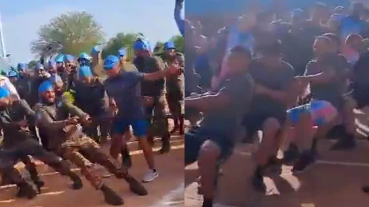 #WATCH | Indian troops won a Tug of War that took place between them and Chinese troops during deployment in Sudan, Africa under a UN Peacekeeping mission: Army officials