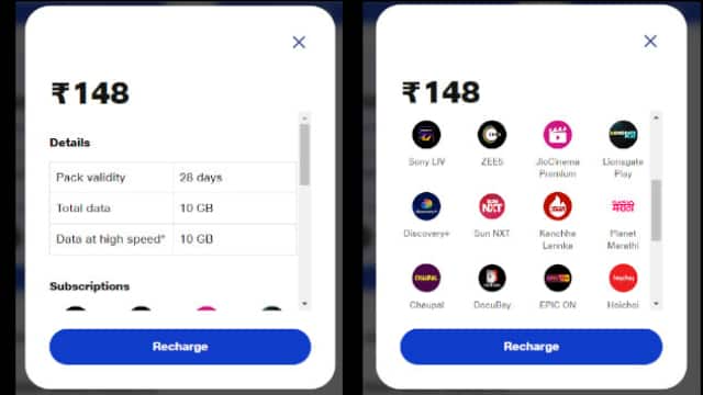 વાસ્તવમાં, અમે Jioના 148 રૂપિયાના પ્લાન વિશે વાત કરી રહ્યા છીએ. તે Jio ની વેબસાઇટ પર એન્ટરટેઇનમેન્ટ પ્લાન્સ હેઠળ JioTV પ્રીમિયમ પ્લાન કેટેગરીમાં સૂચિબદ્ધ છે. વાસ્તવમાં આ એક ડેટા પ્લાન છે, આમાં તમને કોલિંગ અને SMS જેવા ફાયદા નહીં મળે. Jioનો 148 રૂપિયાનો ડેટા એડ-ઓન પ્લાન 28 દિવસની વેલિડિટી સાથે આવે છે અને તમને કુલ 10GB ડેટા પણ મળે છે. પરંતુ સારી વાત એ છે કે આ છોટુ પ્લાનમાં તમને 12 OTT સબસ્ક્રિપ્શન ફ્રીમાં મળે છે. નીચે યાદી જુઓ…
