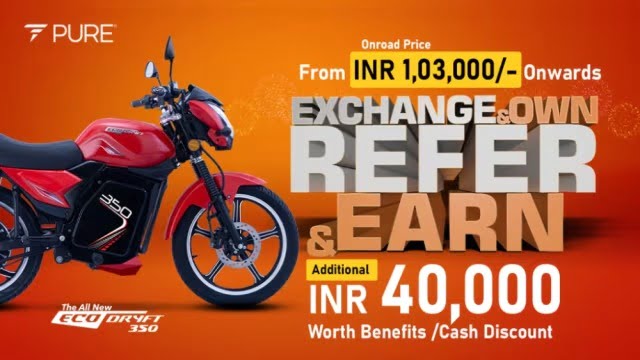 ઇન્ટિગ્રેટેડ ફેસ્ટિવ બોનાન્ઝા હેઠળ, ગ્રાહકોને એક્સચેન્જ બેનિફિટ્સમાં ચાલુ તહેવારની ઓફરમાં કુલ રૂ. 60,000 સુધીનો લાભ મળશે. ઉદ્યોગનું પ્રથમ સંપૂર્ણ સ્વચાલિત મૂલ્યાંકન સોફ્ટવેર રજૂ કરવામાં આવશે. જે ગ્રાહકો માટે પ્રક્રિયાને ઝડપી બનાવશે. ICE ટુ-વ્હીલર માલિકો Pureની ઇલેક્ટ્રિક સ્કૂટર અને મોટરસાઇકલની રેન્જની આપલે કરી શકશે. આગામી 15 દિવસ માટે, PURE રૂ. 55,000 થી રૂ. 60,000ના મૂલ્યના વાહન વિનિમય લાભોને પ્રોત્સાહન આપશે. રેફરલ સ્કીમ હેઠળ તમને 40,000 રૂપિયાનું કેશબેક મળશે. એકંદરે કંપની ગ્રાહકોને રૂ. 1 લાખનો લાભ આપશે.