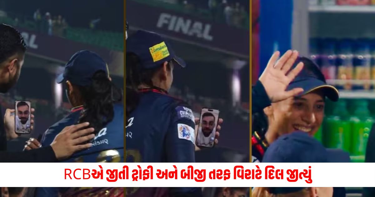 વિમેન્સ પ્રીમિયર લીગની ફાઈનલ મેચમાં રોયલ ચેલેન્જર્સ બેંગ્લોરની જીત બાદ જ વિરાટ કોહલીએ મહિલા ટીમને વીડિયો કોલ કરીને અભિનંદન પાઠવ્યા હતા. વિરાટ કોહલીએ ટીમની કેપ્ટન સ્મૃતિ મંધાના સાથે પણ વાત કરી હતી.