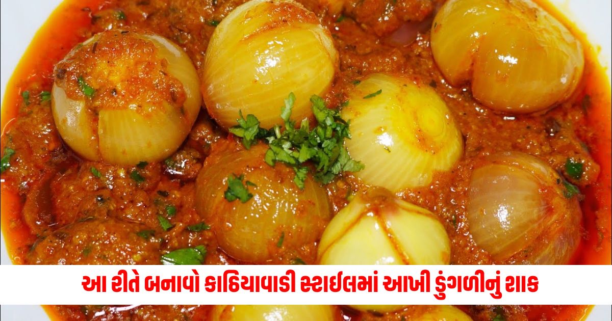 Food News: આપણી ત્યાં વિવિધ પ્રકારે ડુંગળીનું શાક બનાવવામાં આવે છે. તેમાં પણ કાઠિયાવાડી સ્ટાઈલમાં બનાવેલું આખી ડુંગળીનું શાક ખાવાની એક અલગ જ મજા છે. ત્યારે આજે અમે તમને જણાવીશું કાઠિયાવાડી સ્ટાઈલમાં આખી ડુંગળીનું શાક બનાવવાની સરળ રેસીપી.