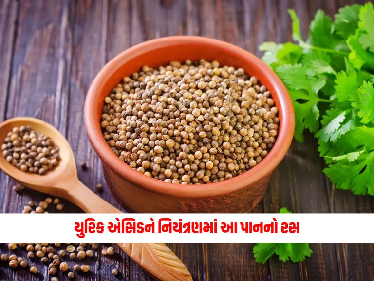ધાણાને કોથમીર પણ કહેવામાં આવે છે. તેનો જ્યુસ બનાવીને પીવાથી યુરિક એસિડ ધીમે ધીમે ઓછું થશે. લીલા ધાણા એન્ટીઑકિસડન્ટથી ભરપૂર હોય છે અને મૂત્રવર્ધક પદાર્થની જેમ કામ કરે છે. તેનું અને તેના રસનું પુષ્કળ પ્રમાણમાં સેવન કરવાથી યુરિક એસિડ અને અન્ય સમસ્યાઓથી રાહત મળે છે.