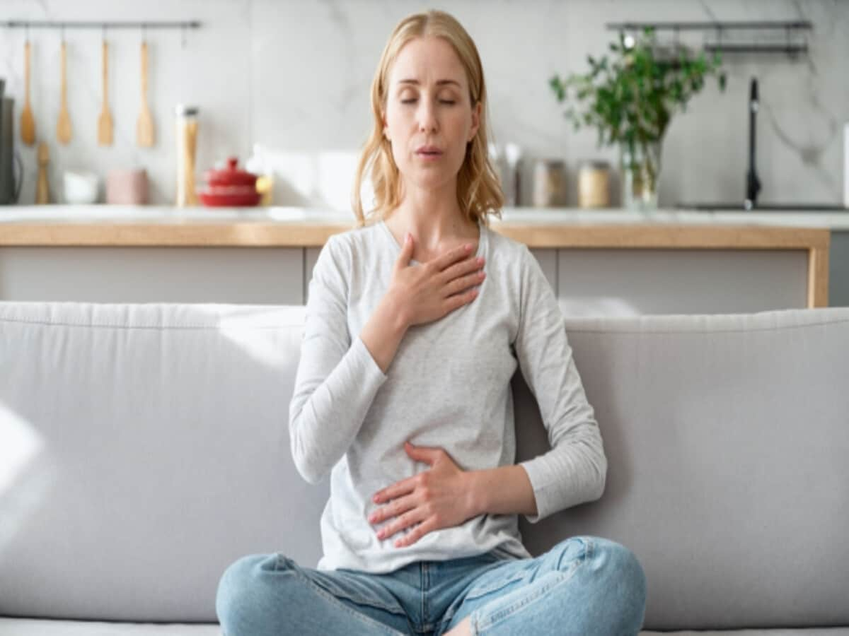 અસ્વસ્થતાથી બચવાનો સૌથી સરળ અને સહેલો રસ્તો એ છે કે પેટમાંથી શ્વાસ લેવાનું શરૂ કરવું. આ માટે એક હાથ તમારી છાતી પર અને બીજો તમારા પેટ પર રાખો. તમારા નાક દ્વારા શ્વાસ લો, તમારા પેટને તમારી છાતી કરતા ઉંચુ લાવવાનો પ્રયાસ કરો. મોં દ્વારા ધીમે ધીમે શ્વાસ બહાર કાઢો અને પછી પુનરાવર્તન કરો.