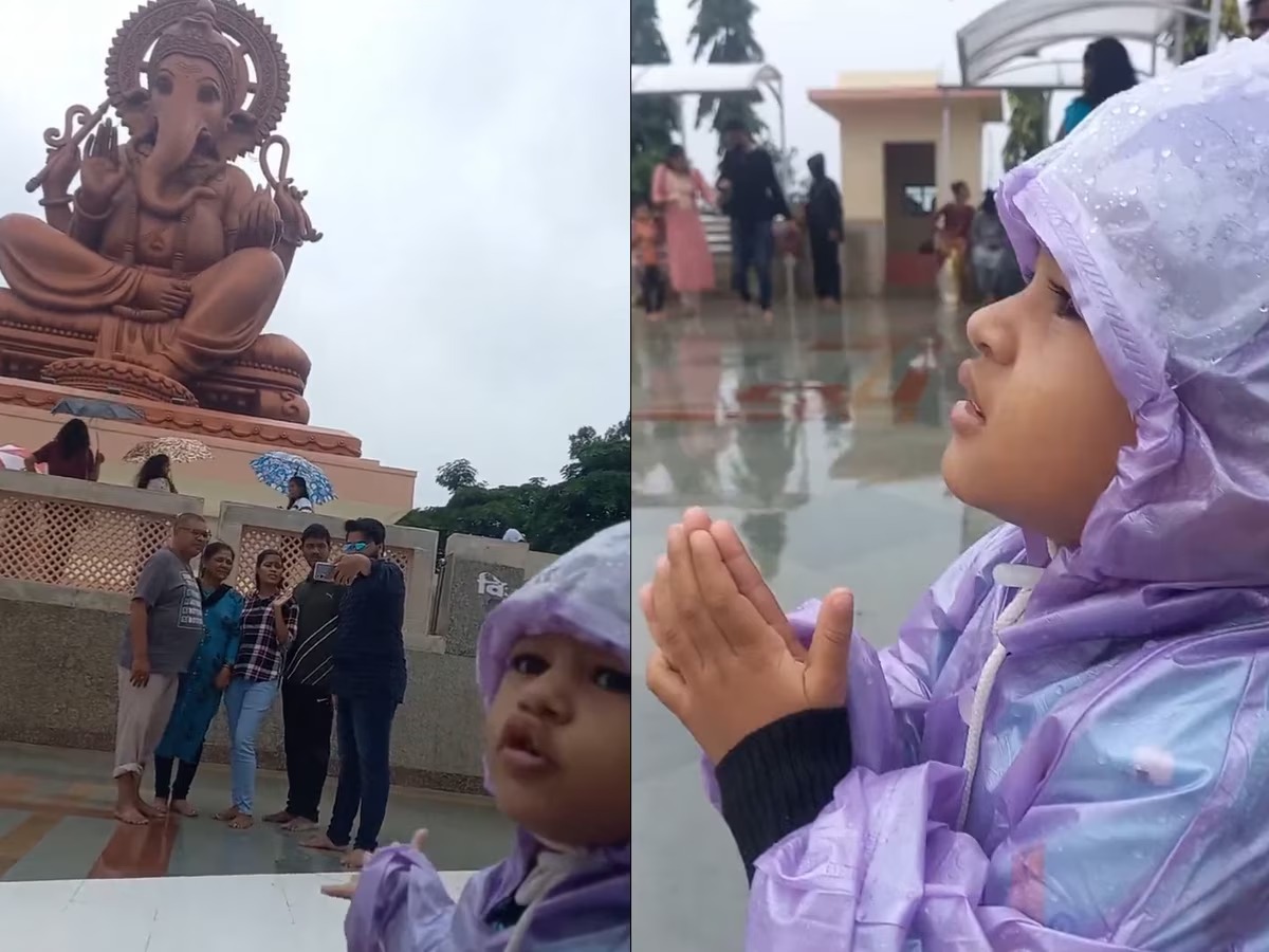 આ ઉપરાંત બાળકોને ભગવાન ગણેશ પ્રત્યે વિશેષ આકર્ષણ હોય છે. ગણપતિ બાપ્પાની વિચિત્ર આકૃતિ ઘણીવાર બાળકોને આકર્ષિત કરે છે અને તેઓ હાથીના માથાવાળા દેવ વિશે વધુને વધુ ઉત્સુક બને છે. ટ્વિટર પર આવો જ એક વીડિયો સામે આવ્યો છે જેમાં એક નાની છોકરી ભગવાન ગણેશને લગતા પ્રશ્નો પૂછતી જોવા મળી રહી છે. વીડિયો ક્લિપમાં નાની બાળકી તેના પરિવારના સભ્યો સાથે પાર્કમાં સ્થાપિત ભગવાન ગણેશની મોટી મૂર્તિની મુલાકાત લેતી જોવા મળે છે. વરસાદ પડી રહ્યો છે અને નાની છોકરી રેઈનકોટ પહેરેલી જોવા મળે છે.