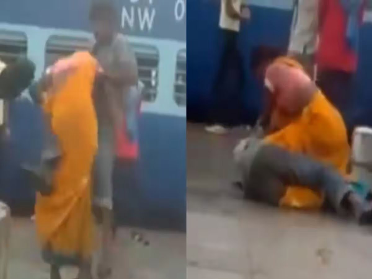 વીડિયોમાં જોવા મળી રહ્યું છે કે પત્નીએ પતિના માથા પર હાથ વડે હુમલો કર્યો હતો. તે આ આઘાતમાંથી સાજો થાય તે પહેલાં પત્નીએ તેને પગ પકડીને ઊંચકીને પ્લેટફોર્મ પર જ ડ્રોપ કરી દીધો. તે અટક્યા વિના તેની ટોચ પર બેસે છે અને તેને થપ્પડ મારવાનું ચાલુ રાખે છે.
